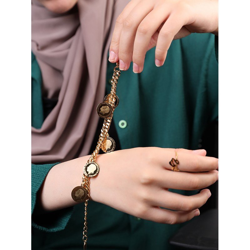 ✅ التصميم: سوار ذهبي فاخر يتسم بتصميم الجنزير الأنيق والمبهر، مزين بـ 5 ليرات إنجليزية لإضفاء لمسة من الفخامة والجمال. هذا التصميم يجمع بين الأناقة الكلاسيكية والعصرية بشكل مثالي.