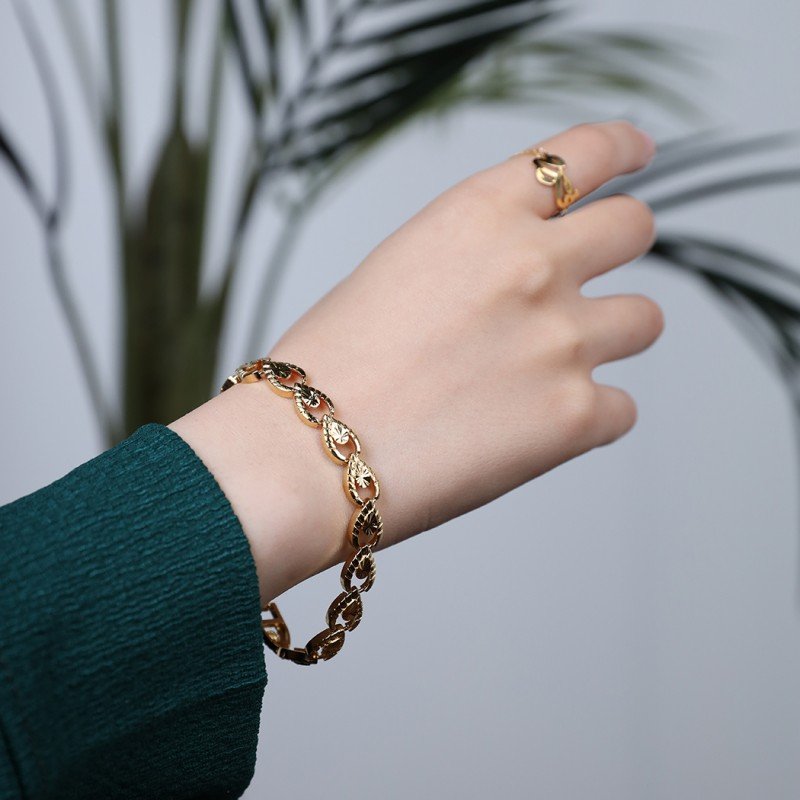✅ التصميم: يتميز السوار بتصميم دمعة جميلة تعكس الأنوثة والنعومة، مع تفاصيل دقيقة تضفي عليه مظهرًا رائعًا. التصميم الذهبي يضيف لمسة من الفخامة التي تعزز من جاذبية السوار.
