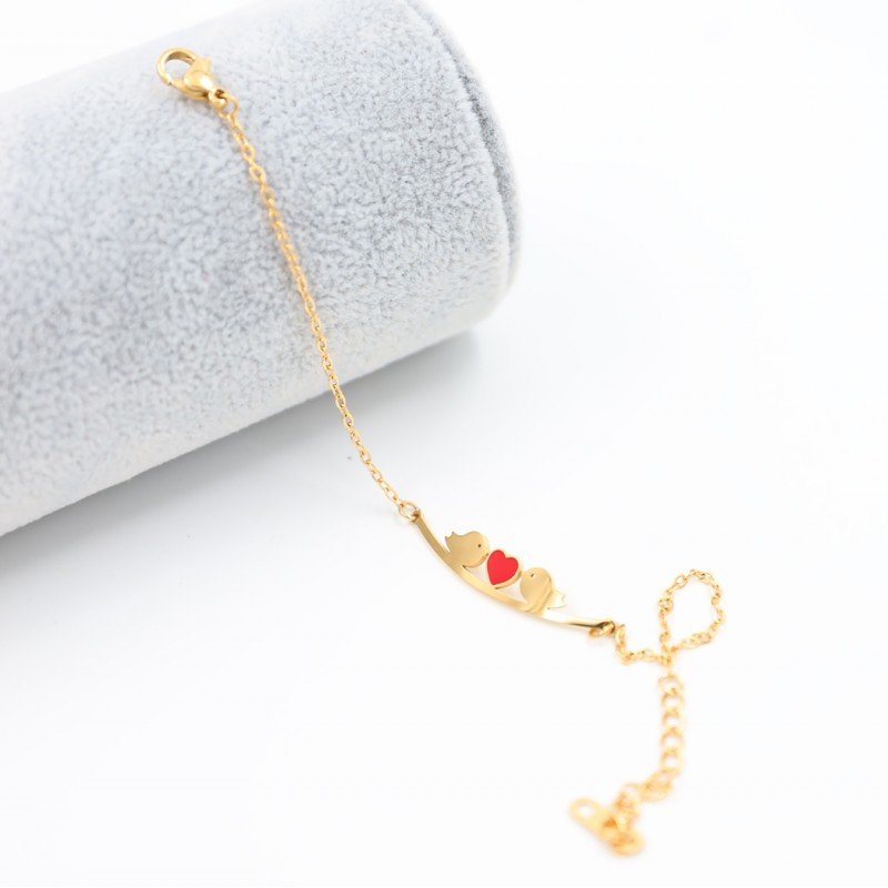 ✅ التصميم: سوار أنيق مزخرف بتصميم “عصفوران” متشابكان، مما يرمز إلى الحرية والجمال في طائرين يطيران معاً. التصميم يلتقط روح الأناقة البسيطة مع لمسة من الفخامة التي يعكسها اللون الذهبي اللامع.