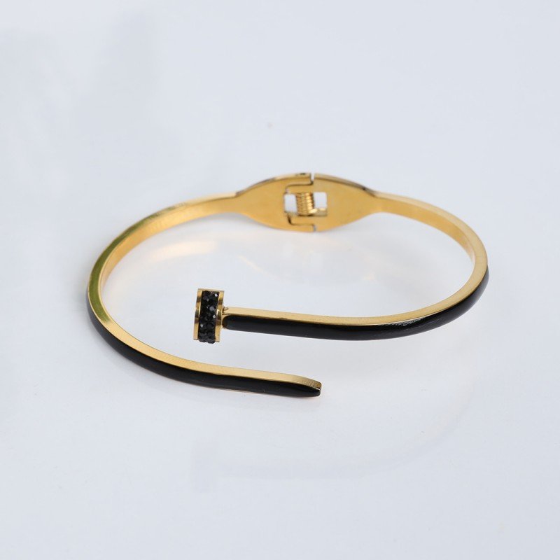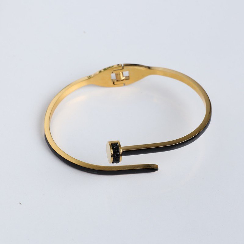 ✅ سوار ذهبي بتصميم مسمار بلون أسود