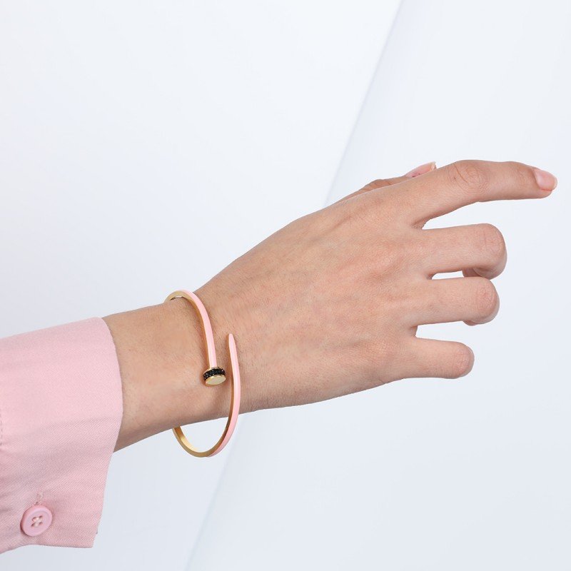 ✅ سوار ذهبي بتصميم مسمار لون زهري