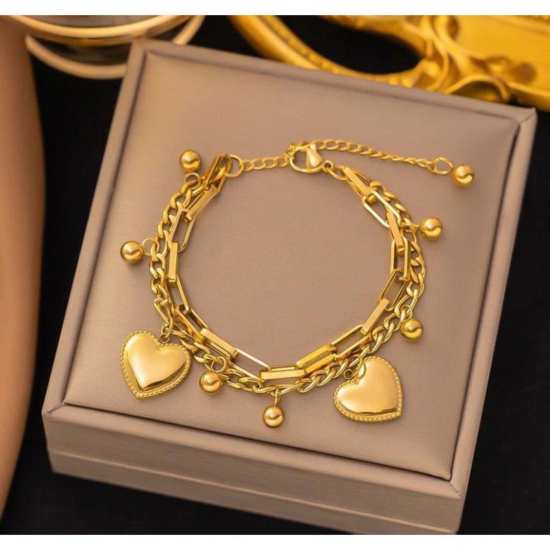 ✅ سوار ذهبي طبقتهنين بتصميم جنزير وقلوب