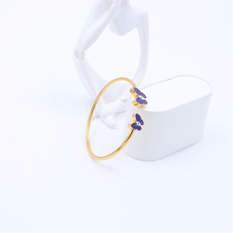 سوار مفتوح لون ذهبي تصميم فراشات كحلي