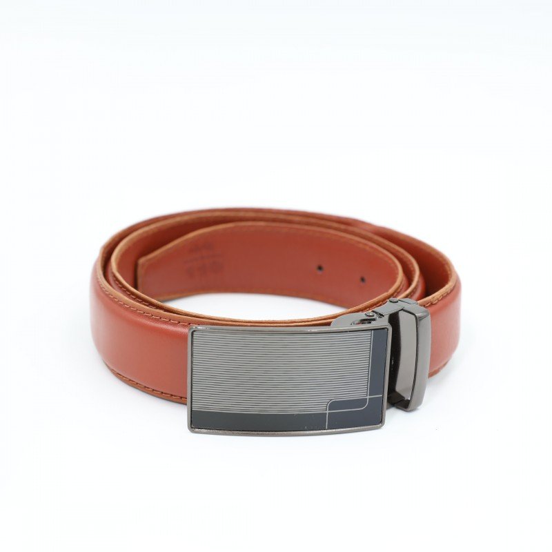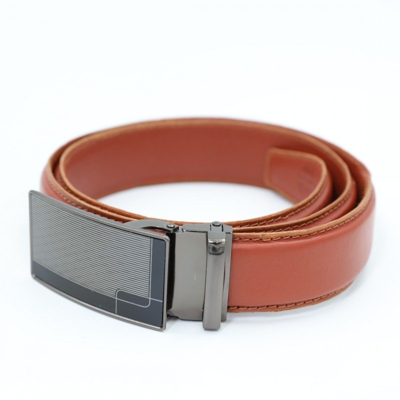 سير جلد طبيعي رسمي بتصميم ابزيم للرجال لون عسلي