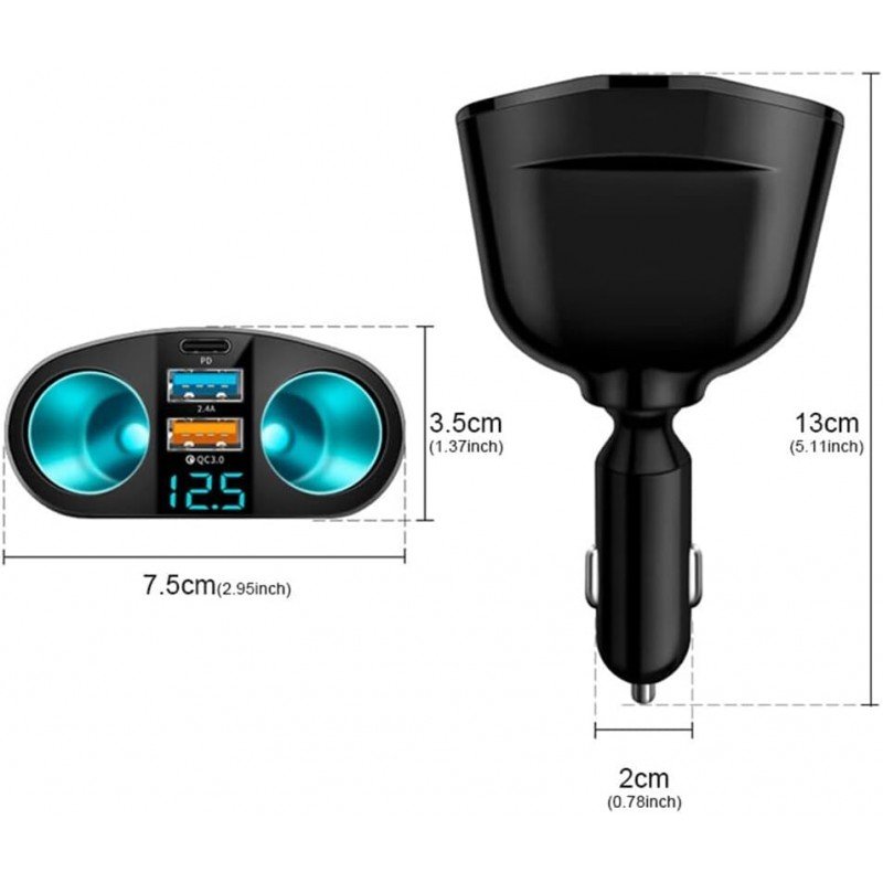 شاحن جوال مزدوج في السيارة – 2 منفذ USB و منفذ Type C مع شاشة عرض LCD – يدعم QC3.0 و2.4A لشحن أسرع وأكثر أماناً.