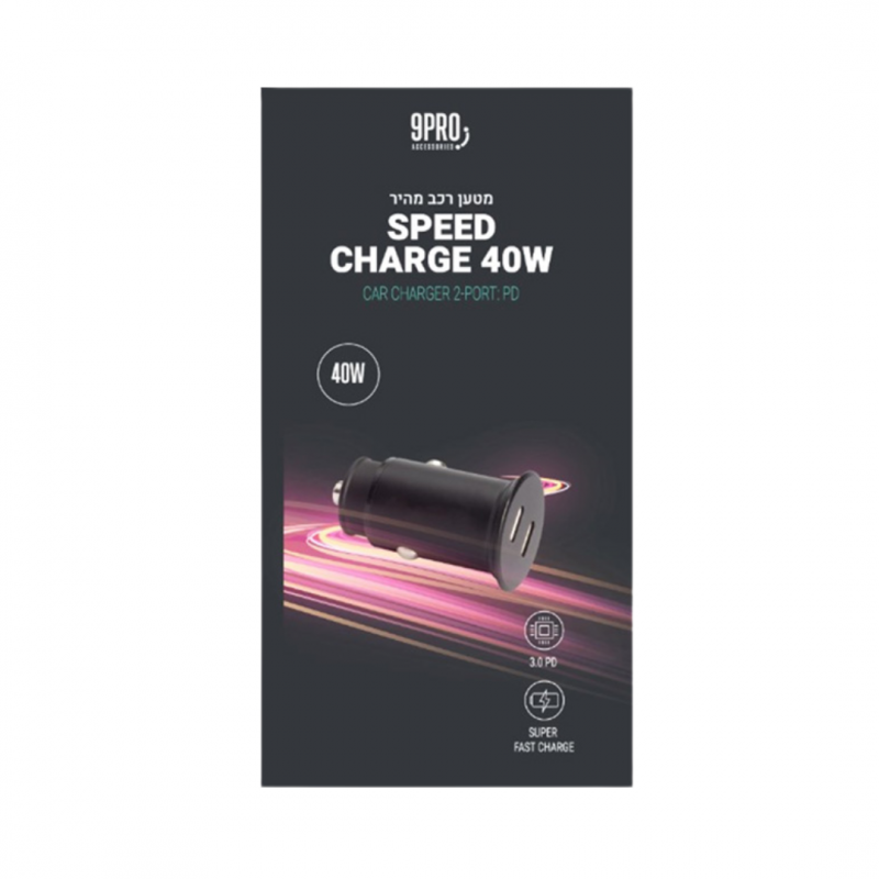 شاحن سيارة بمنفذين تايب سي مع كابل ايفون قوة 40 واط لون أسود