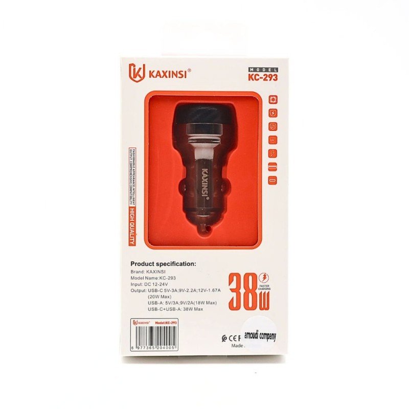 شاحن سيارة عظمة مدخلين يو اس بي وتايب سي مع سلك تايب سي الى ايفون يدعم الشحن الامن والسريع 38 واط