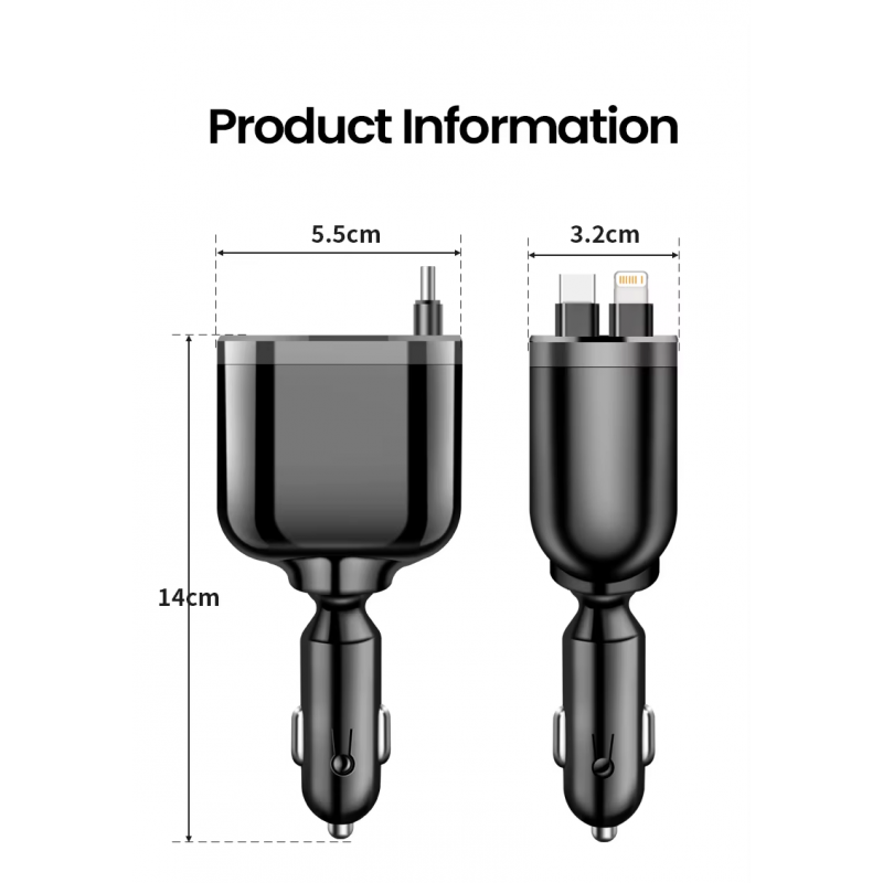 شاحن سيارة مع كوابل ايفون و type-c زمبرك وشاشة فحص البطارية