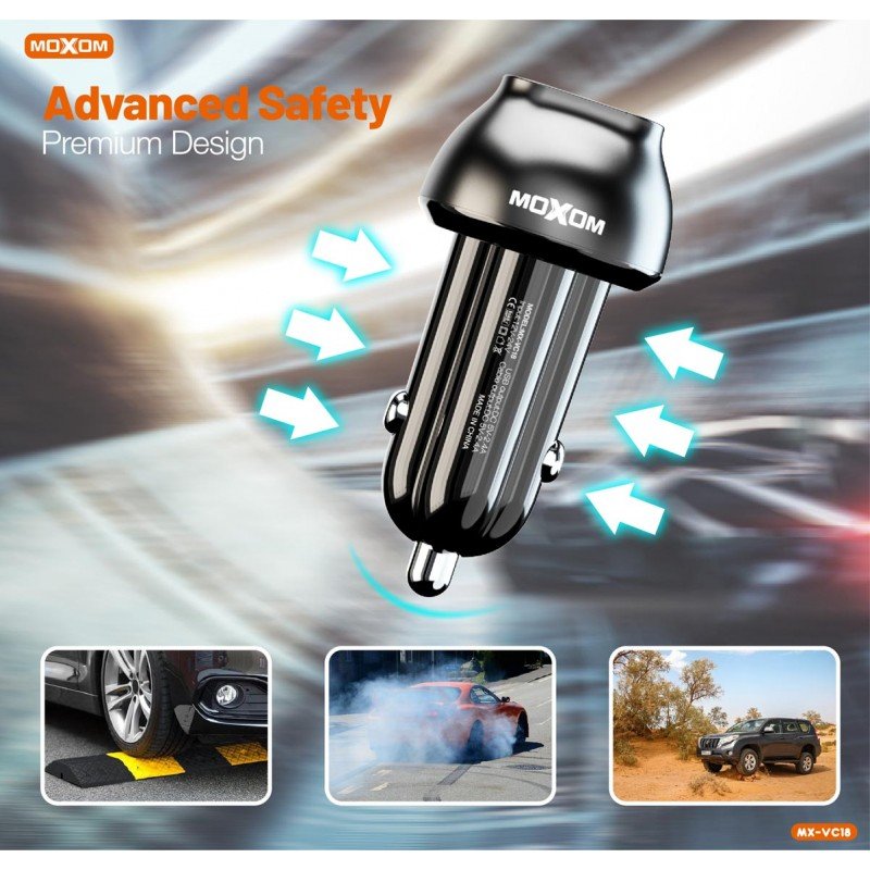 شاحن سيارة مع كيبل شحن مدمجة منفذ USB و Type C – ماركة Moxom MX-VC18
