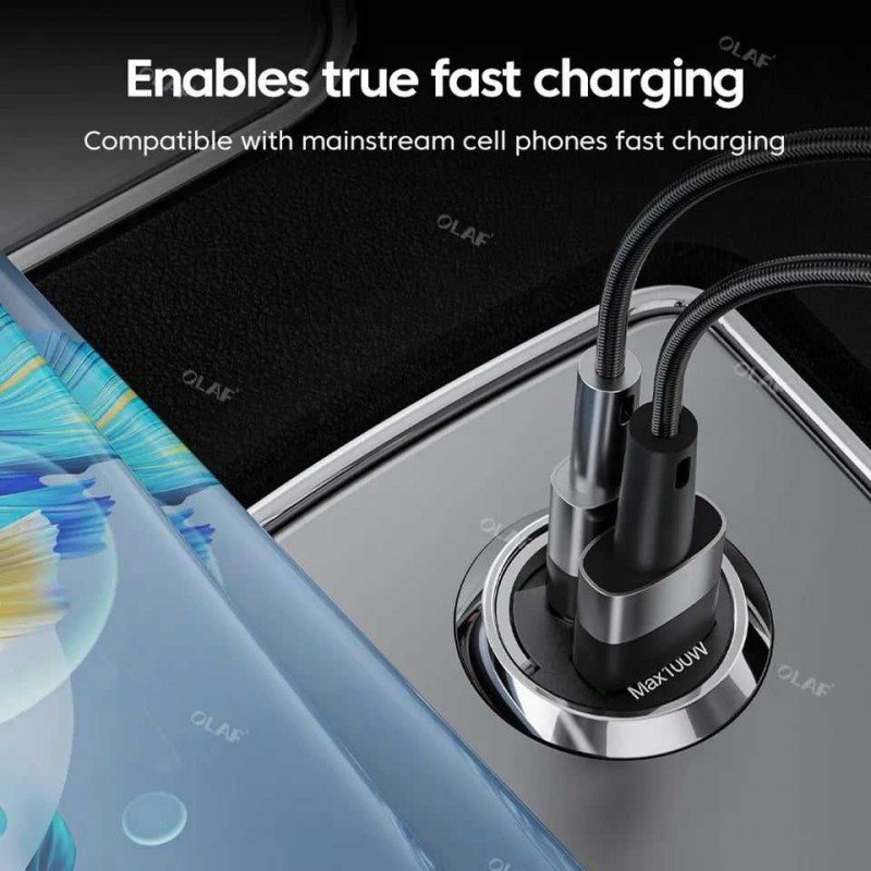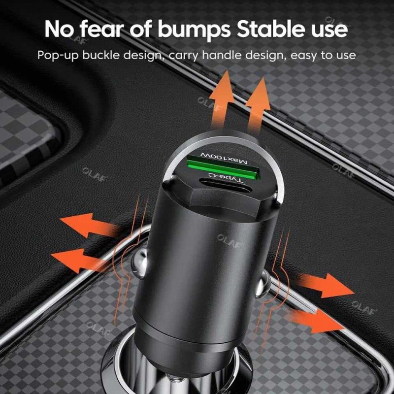 مع علاقة لسحب الشاحن من فتحة الولاعة مداخل Qualcomm للشحن السريع, متوافق مع جميع الهواتف والتابليت وبإمكانه شحن لابتوب بسبب تعدد الفولطية اسم المنتج: 100 واط سحب حلقة صغيرة غير مرئية سيارة تهمة المعلمة: DC12-24V شحن سريع للغاية USB-C: تيار مستمر 5.0 فولت * 3.4A كحد أقصى USB-A: تيار مستمر 4.5 فولت-23 فولت/1.5-6.5A كحد أقصى MAX40W MAX66W MAX100W المواد: سبائك الألومنيوم لون المنتج: أسود