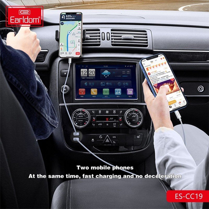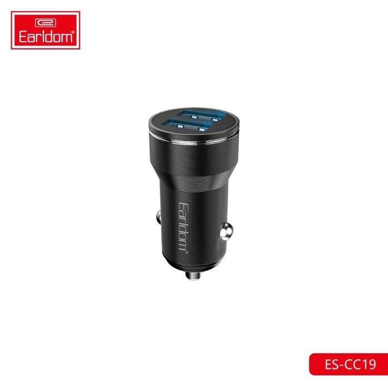 شاحن سيارة Earldom CC-19، بمنفذين USB، مع وصلة منفذ ايفون Lightning – بقوة 12 واط.