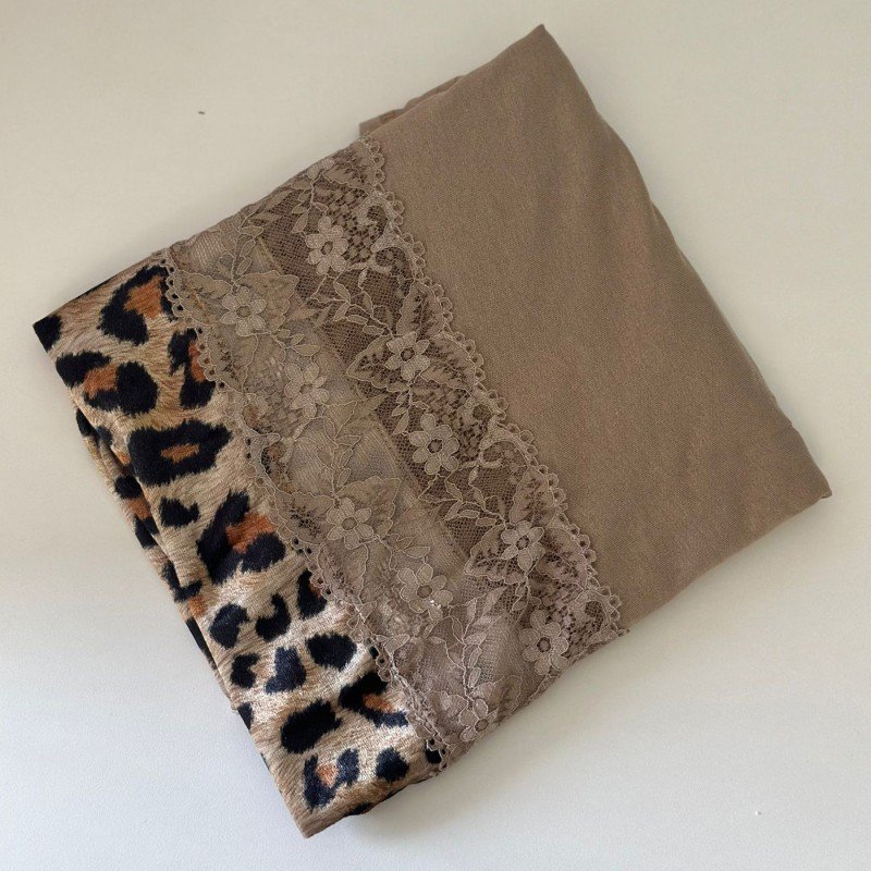 ✅ اللون: بيج مع دانتيل جانبي ووسط من جلد النمر ذهبي.