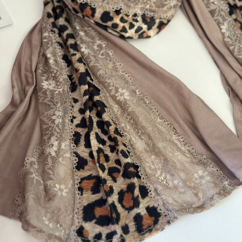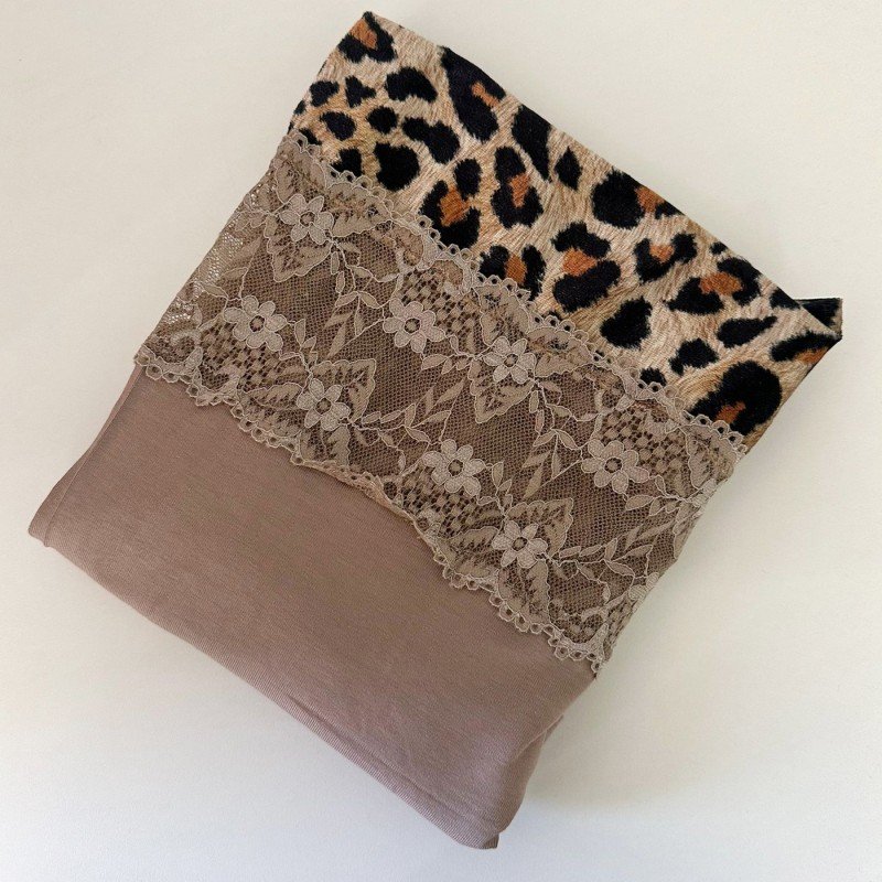 ✅ اللون: نهدي مع دانتيل جانبي ووسط من جلد النمر.
