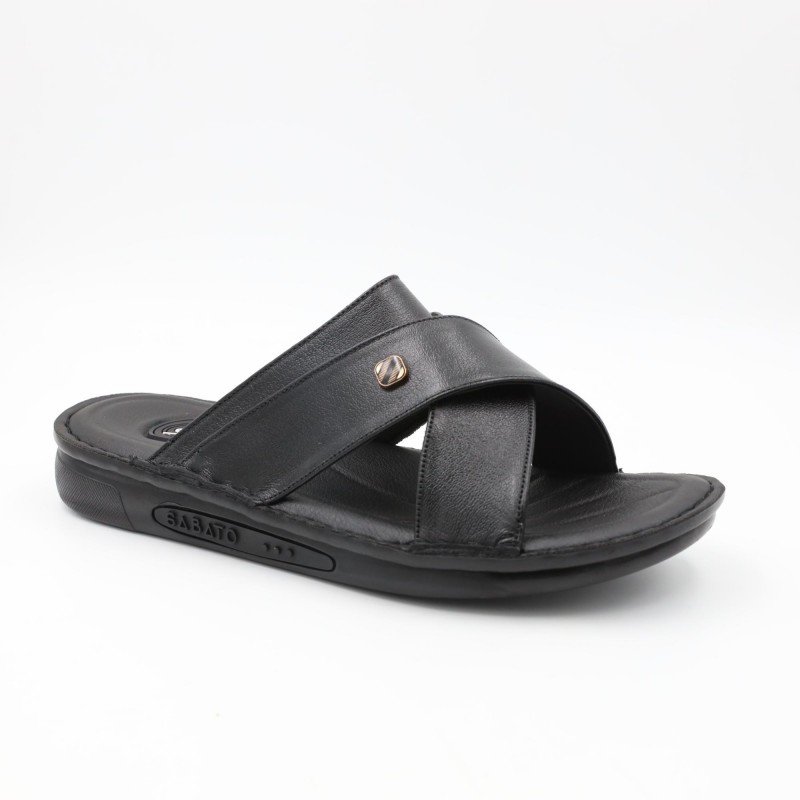 شبشب جلد طبيعي طبي من SABATO للرجال لون أسود