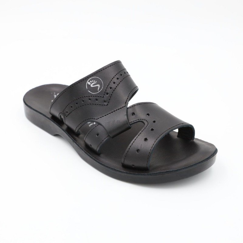 شبشب جلد طبيعي بتصميم اصبع من SABATO للرجال لون أسود