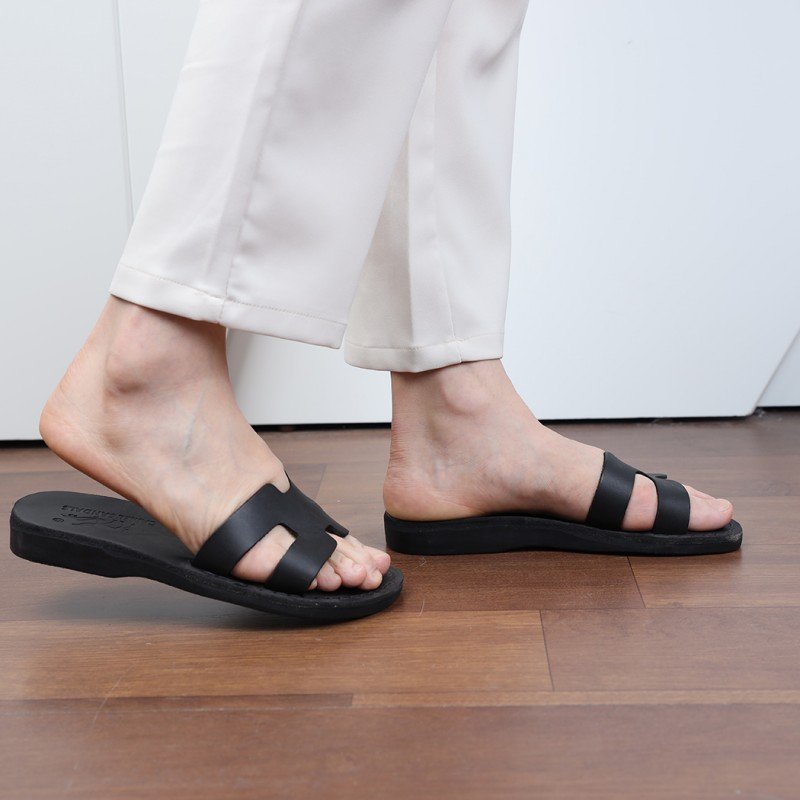 ✅ شبشب جلد بتصميم مفتوح الأصابع للنساء