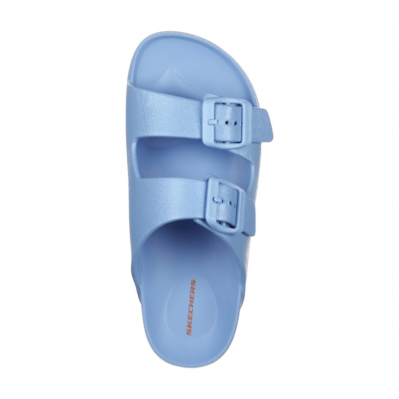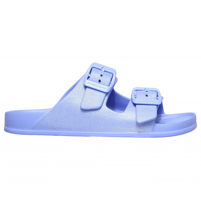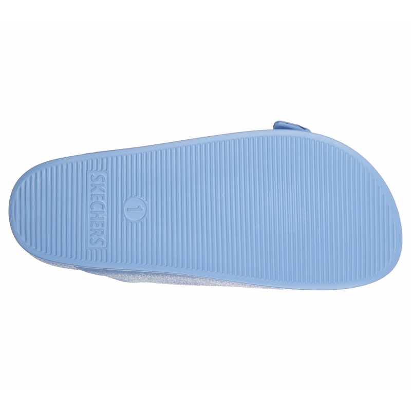Keep things simple, streamlined and comfortable with the SKECHERS Foamies: Cali Blast – Sunshine Shimmer sandal. Soft smooth flexible EVA foam upper with pearlized finish in a two band casual slide sandal with adjustable buckles and contoured footbed.