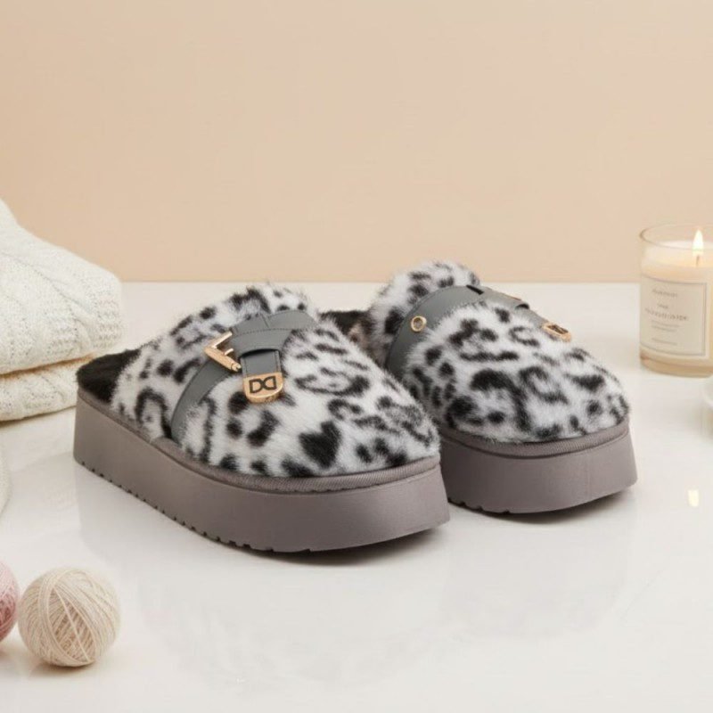 شبشب شتوي للنساء لون سكني و أسود