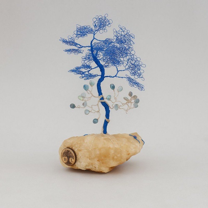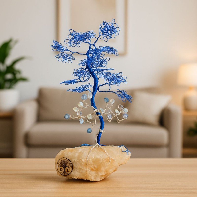 شجرة بونساي مصنوعة من الاسلاك المعدنية مع قاعدة حجر طبيعي كريستالي ملحي طولها 26 سم