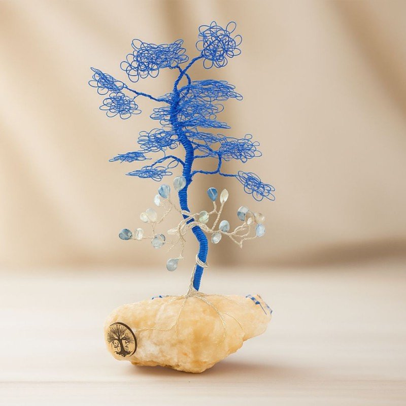 شجرة مصنوعة من الاسلاك المعدنية مع الحجر الكريم تورمالين مع قاعدة حجر طبيعي كريستالي ملحي طولها 20 سم
