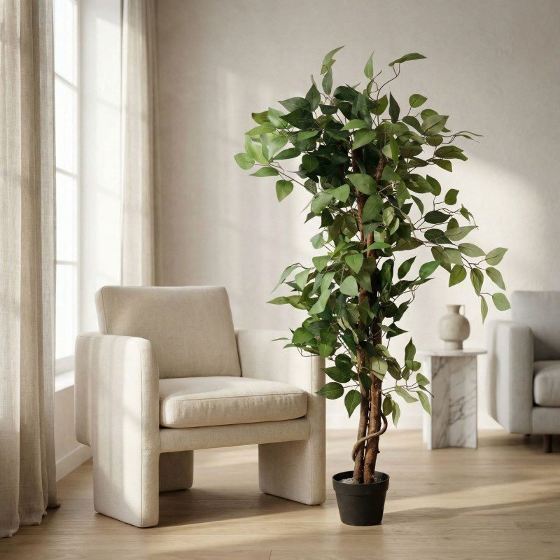 شجرة BANYAN GREEN الصناعية تضيف حضورًا طبيعيًا أنيقًا إلى المساحات الداخلية دون الحاجة إلى عناية أو ري. تتميز بأوراق خضراء كثيفة بتفاصيل واقعية وأغصان متناسقة تمنحها مظهرًا قريبًا من الشجر الطبيعي.