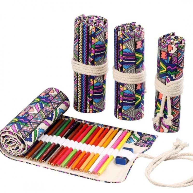 شنتة من القماش 36 فتحة قابلة لللف لأقلام الرصاص الملونة وأقلام المكياج والرسم والتلوين
