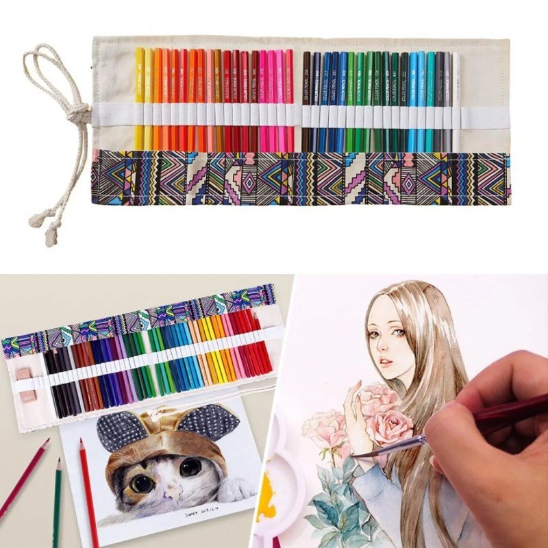 شنتة من القماش 36 فتحة، قابلة لللف، لأقلام الرصاص الملونة، وأقلام المكياج، والرسم والتلوين