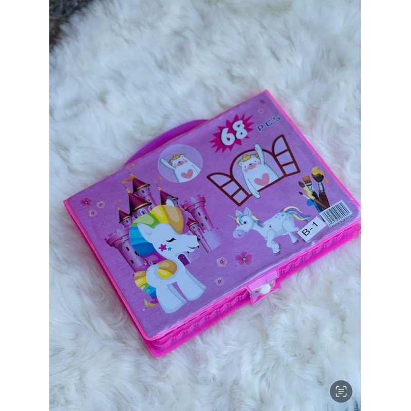 ✅تحتوي الشنطه على جميع أنواع الألوان مثل الألوان المائية والفلوماستر وألوان الصابون والخشب مع ريشة وممحاه ومبراه ومسطره وزيت خاص للألوان المائية.