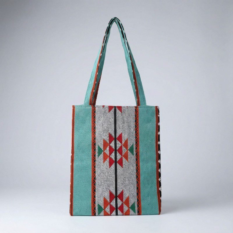 شنطة توت باغ عملية بسيطة بالقماش البدوي الوان منوعة تركواز غامق