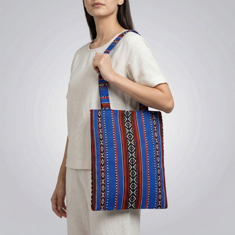 شنطة توت باغ عملية بسيطة بالقماش البدوي الوان منوعة نيلي
