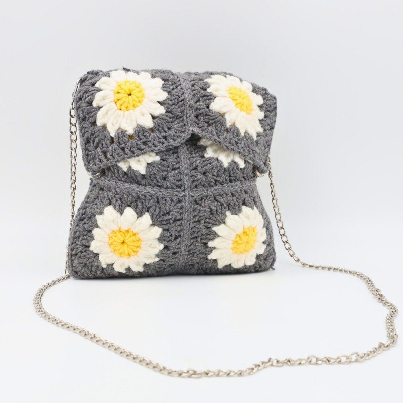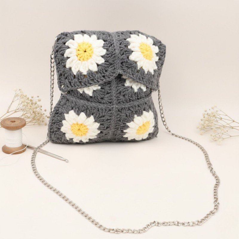 شنطة يد صوف (Handmade) ✅ مشغولة يدويًا بخيوط صوفية ناعمة ومتينة تمنحها مظهرًا دافئًا وفخمًا ✅ مزودة بيد سلسلة معدنية تضيف لمسة عصرية وأنيقة ✅ إغلاق بكبّاس عملي يحافظ على أغراضك بأمان وأناقة ✅ اللون: سكني غامق راقٍ وسهل التنسيق مع مختلف الإطلالات ✅ الحجم: وسط – مثالية للاستخدام اليومي والمناسبات ✅ الأبعاد: 22 × 22 سم