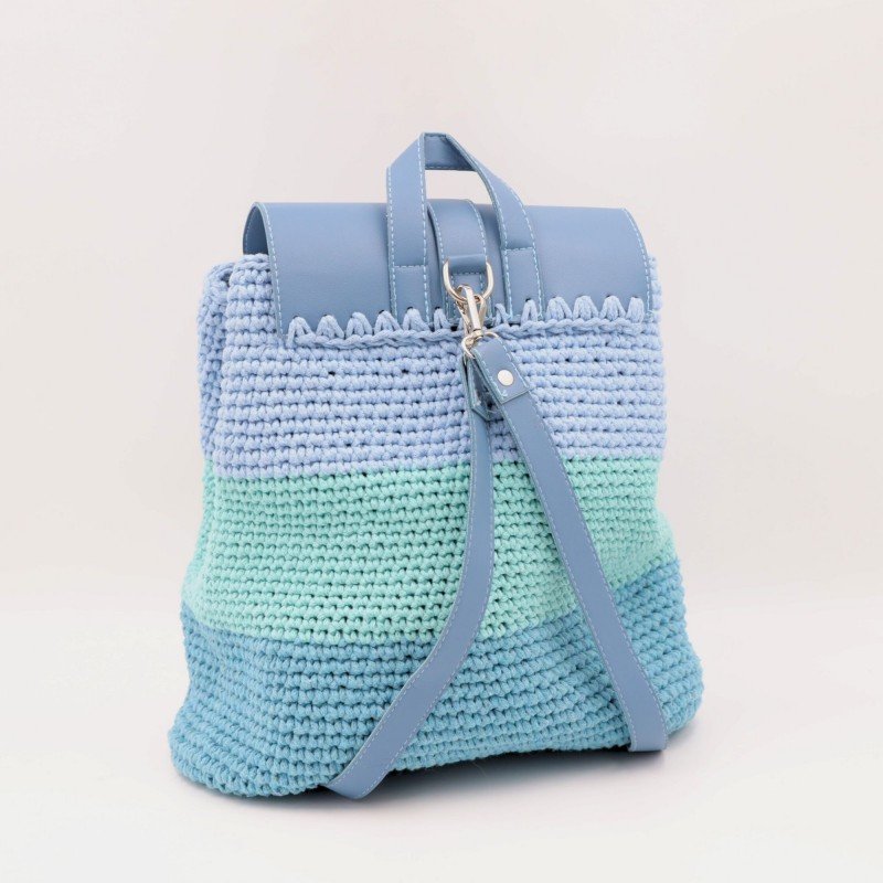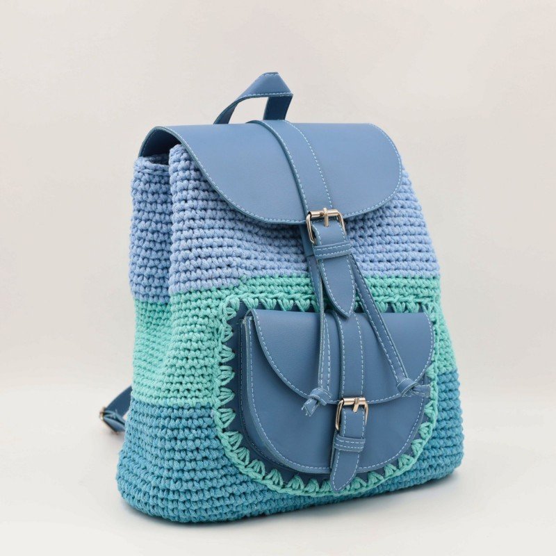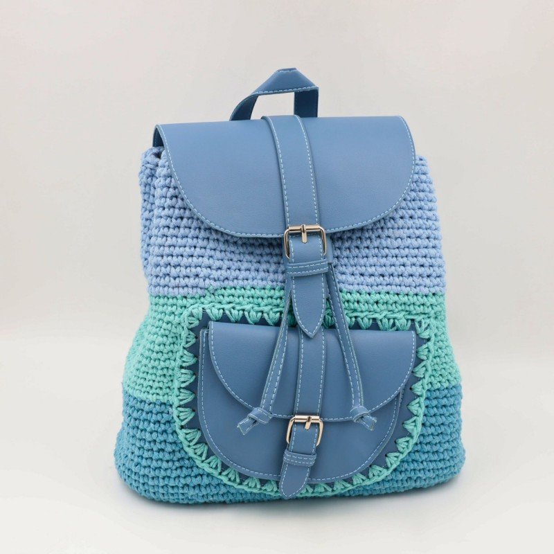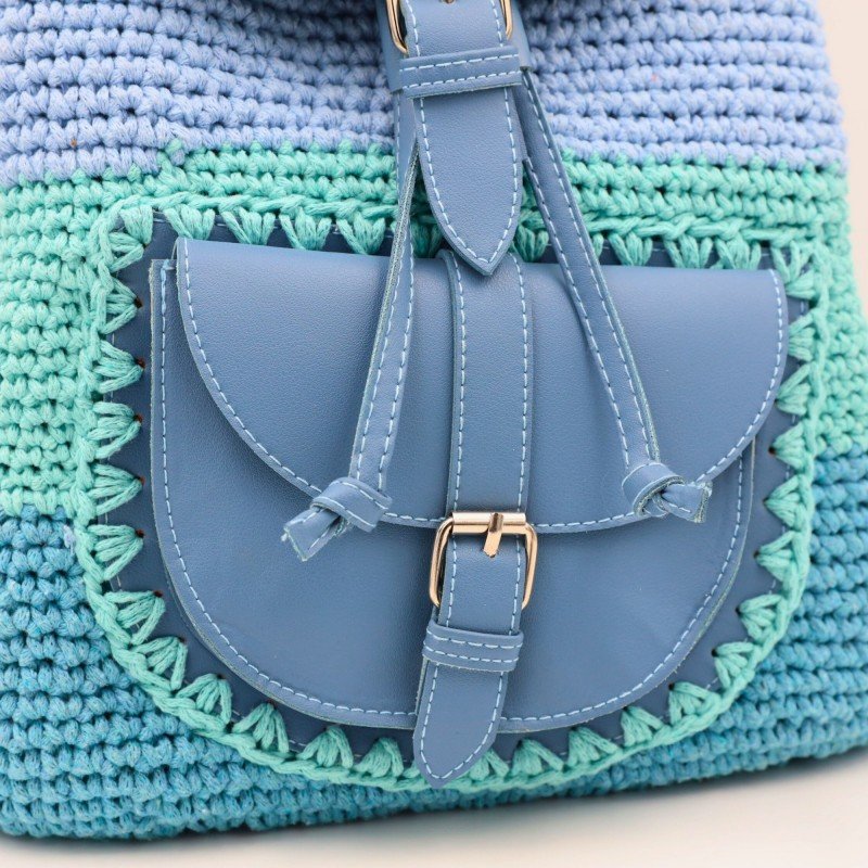 شنطة ظهر كروشيه (Handmade) ✅ مشغولة يدويًا بخيوط قطنية متينة تمنحها مظهرًا أنيقًا ولمسة حرفية فاخرة ✅ مزودة بيد وجيبة من الجلد تضيف مزيجًا من العصرية والمتانة ✅ إغلاق بكبّاس عملي يحافظ على أغراضك بأمان وأناقة ✅ اللون: أزرق أنيق يضفي لمسة مميزة على إطلالتك اليومية ✅ الحجم: كبير – مثالية للجامعة، العمل، أو الرحلات القصيرة ✅ الأبعاد: 29 × 26 سم