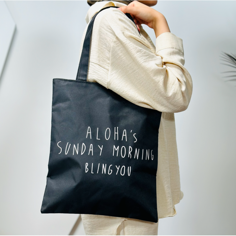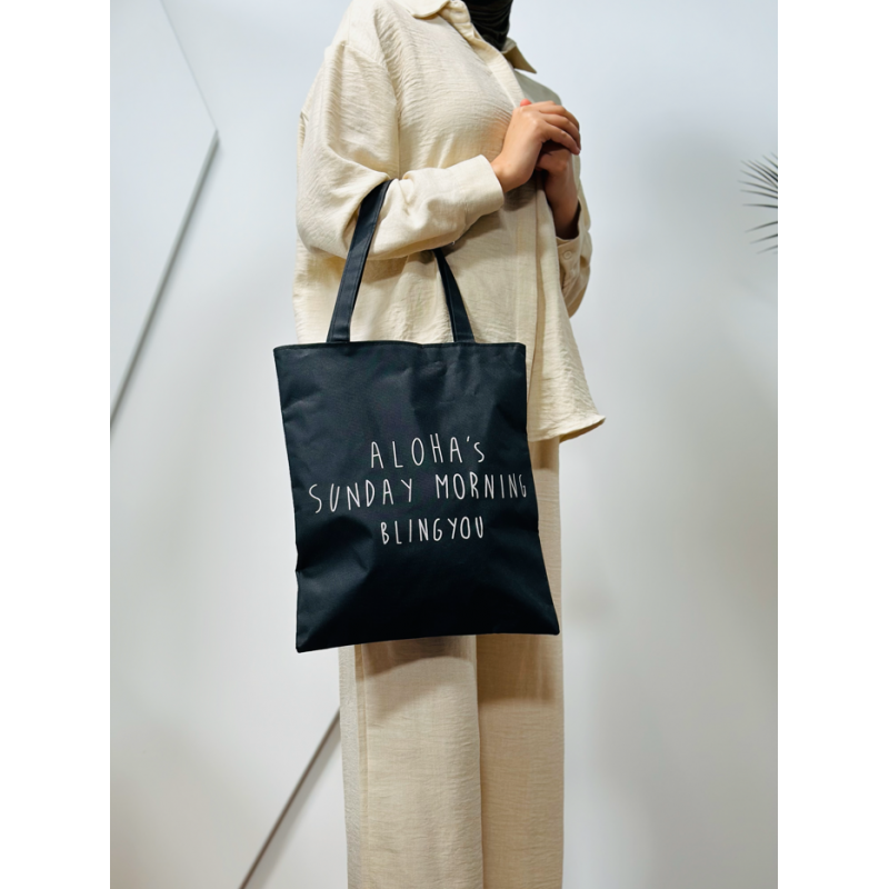 ✅شنطة كتف بتصميم ALOHA’S SUNDAY MORNING BLING YOU ✅تحتوي على جيب واحد وسحاب من الداخل . ✅اللون : أسود . ✅جودة عالية وممتازة . ✅عملية ومريحة في الإستخدام .