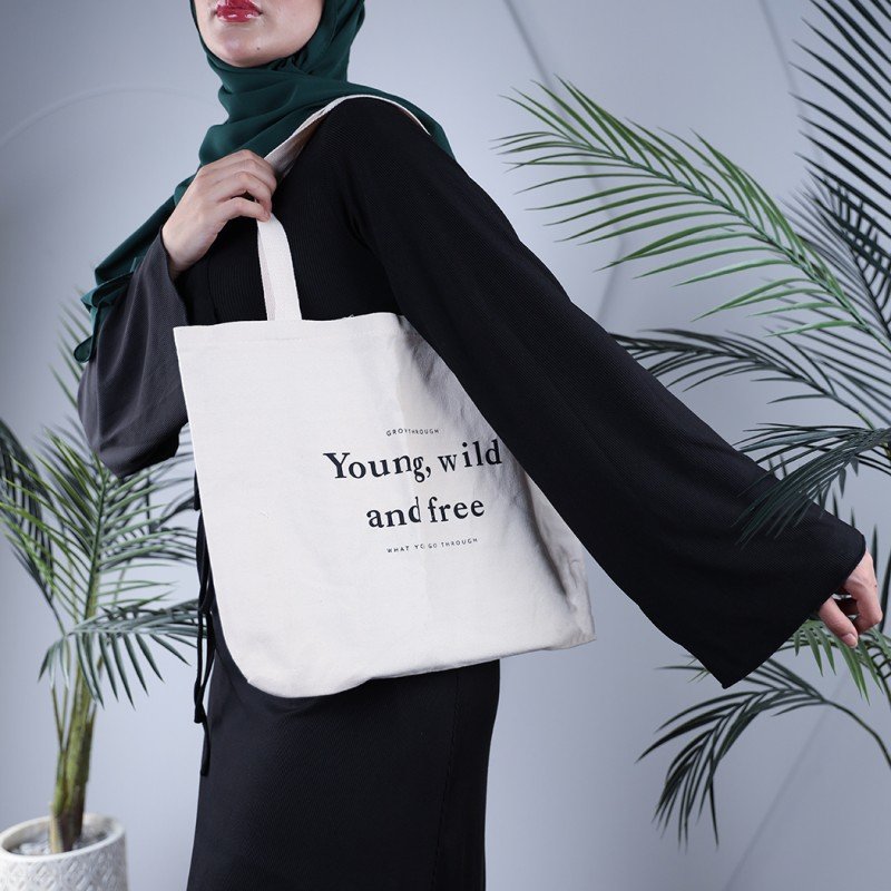 شنطة كتف لون بيج تصميم grow through young . Wild and free