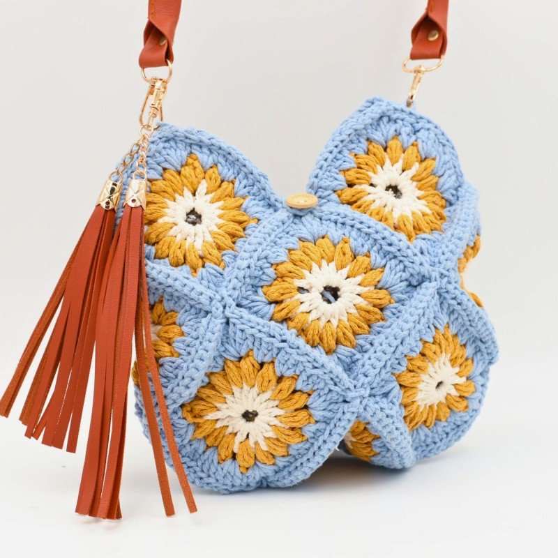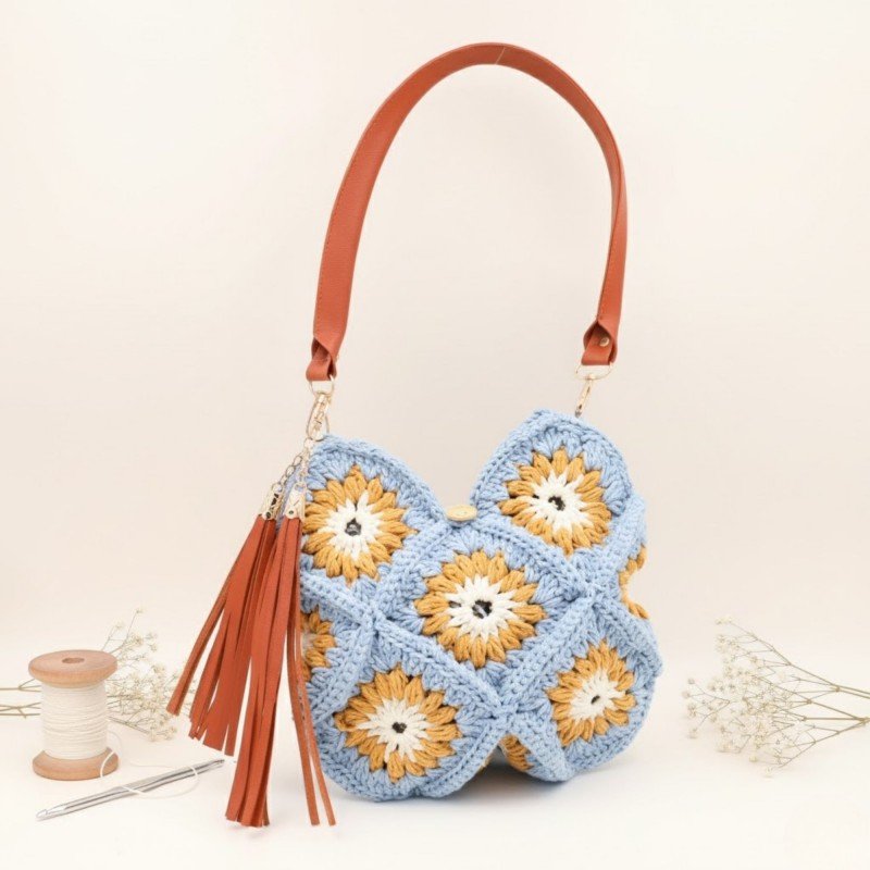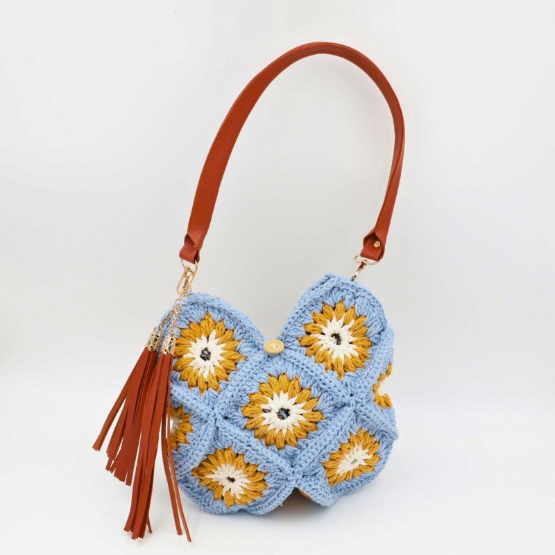 شنطة يد كروشيه (Handmade) ✅ مشغولة يدويًا بخيوط قطنية متينة تمنحها ملمسًا طبيعيًا ومظهرًا أنيقًا ✅ مزودة بيد جلد فاخرة تضيف لمسة راقية وعصرية ✅ إغلاق بزر أنيق يحافظ على أغراضك بأمان وأناقة ✅ اللون: مزيج جميل من الأزرق، الكموني، والبيج لإطلالة فريدة ومميزة ✅ الحجم: وسط – مثالية للاستخدام اليومي والمناسبات ✅ الأبعاد: 26 × 26 سم