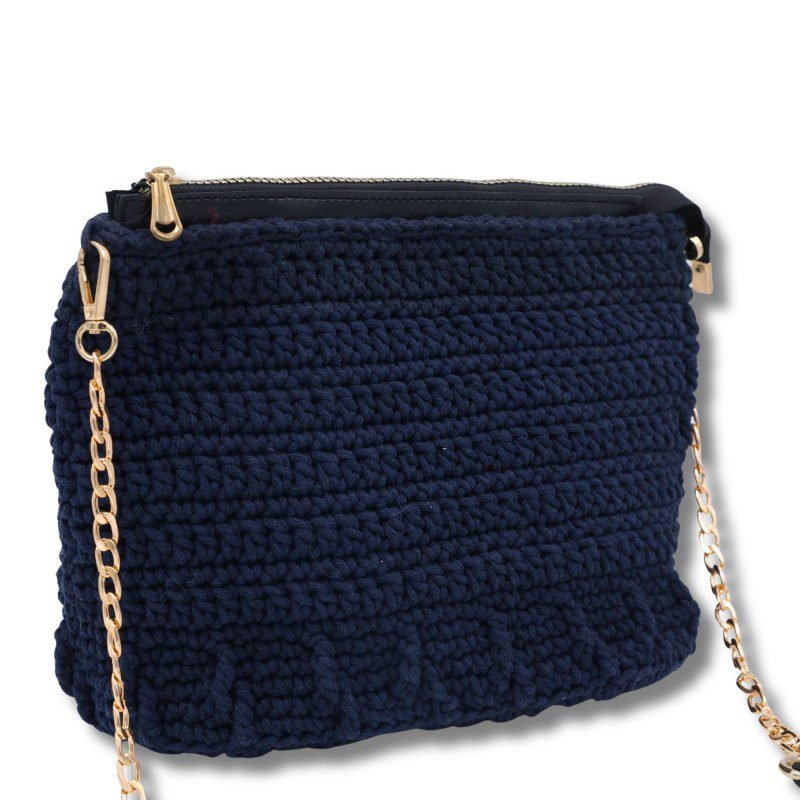 شنطة كروشية مع يد سلسلة لون كحلي – نكشة فن