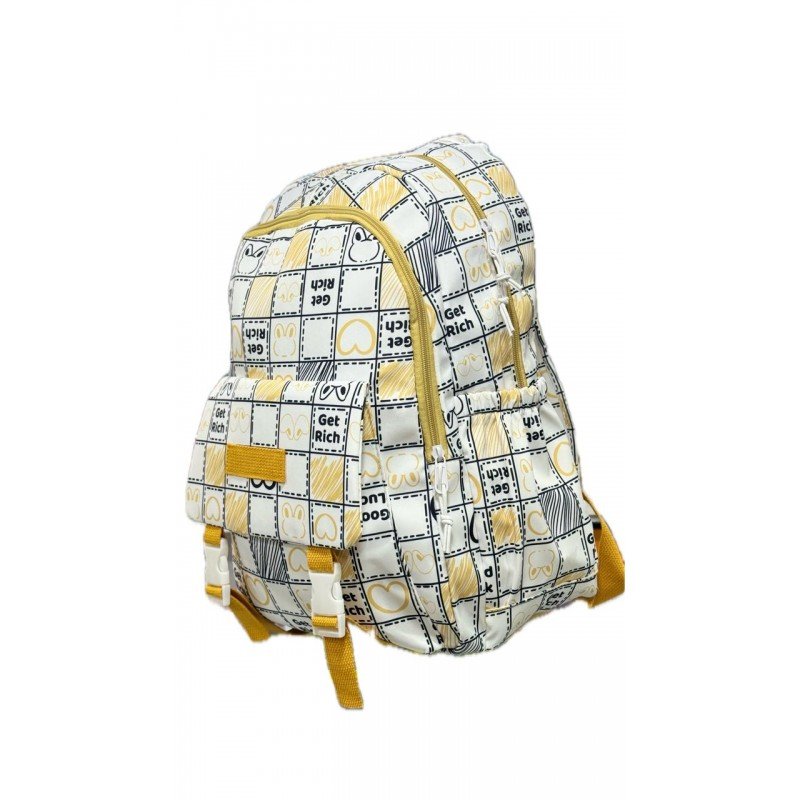 ✅ التصميم: شنطة مدرسية بقياس 16 إنش، تصميم عصري بألوان متباينة (أبيض وأصفر) مع تفاصيل بسيطة ولكن جذابة. تحتوي على جيب رئيسي مع جيوب إضافية لتنظيم الأغراض.