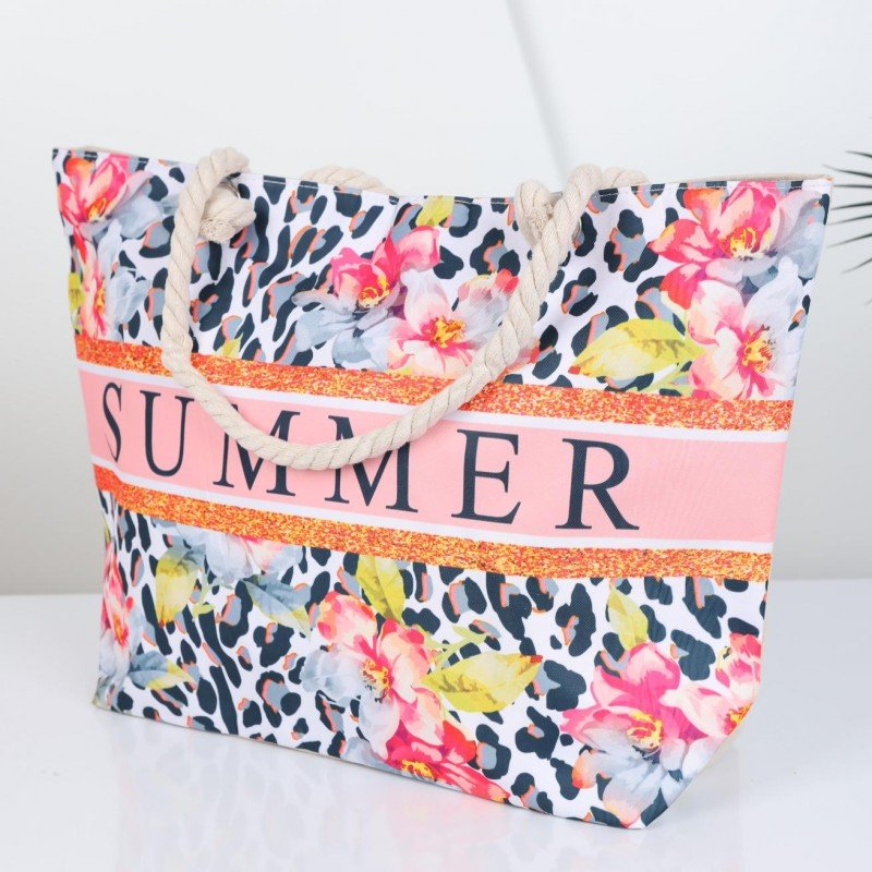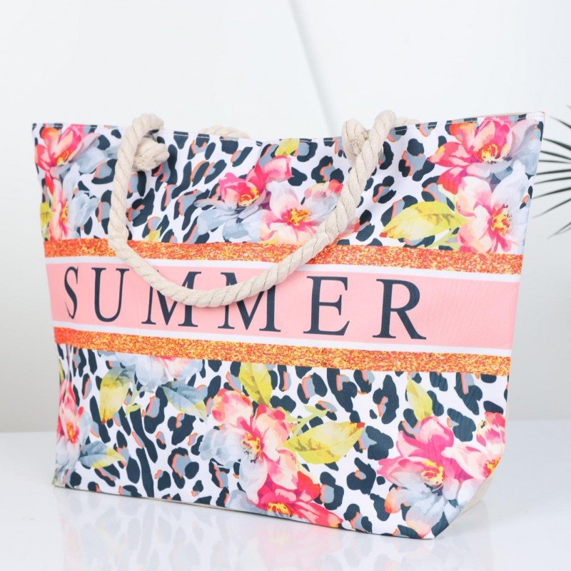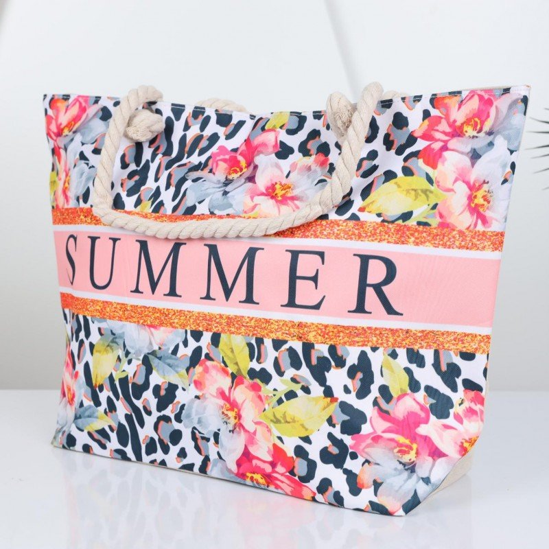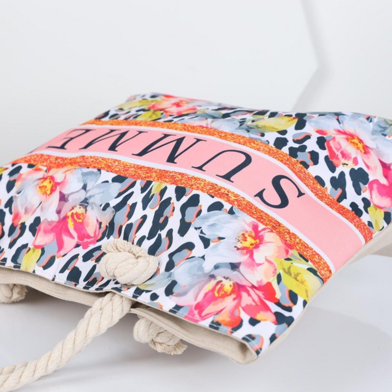 شنطة يد قماش للرحلات بتصميم مزخرف SUMMER