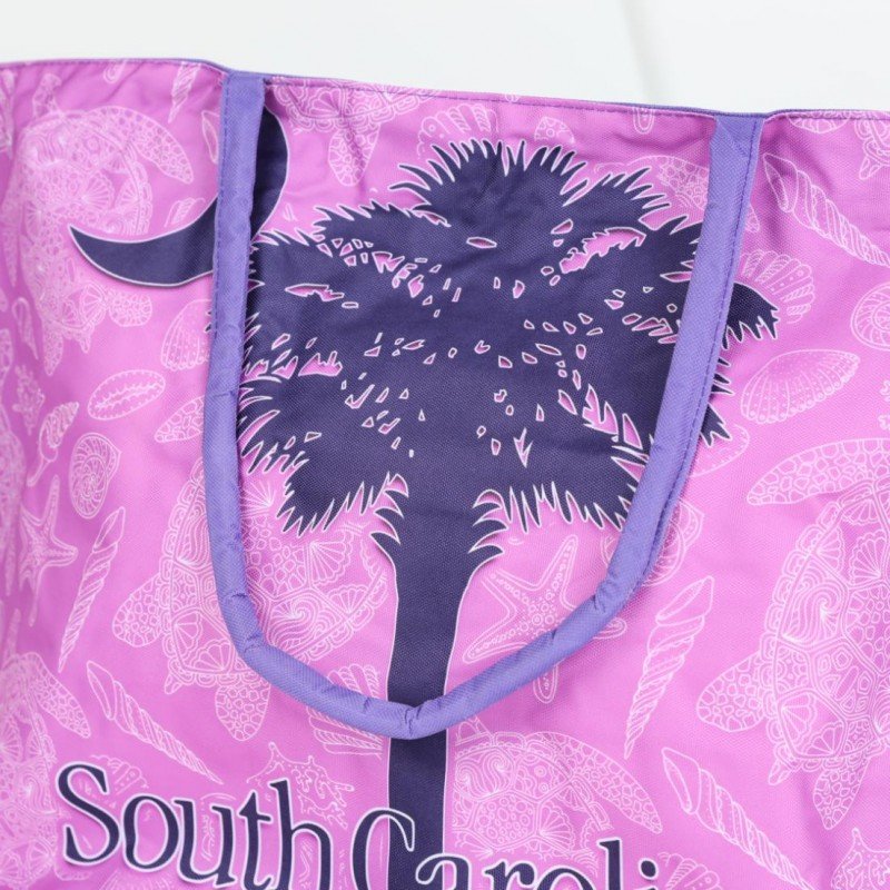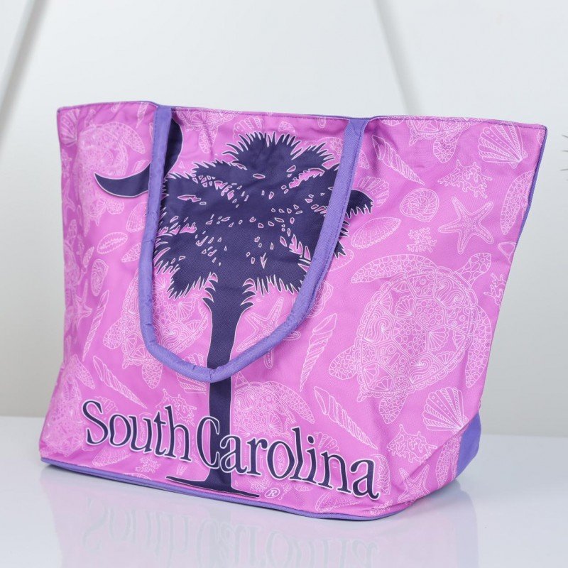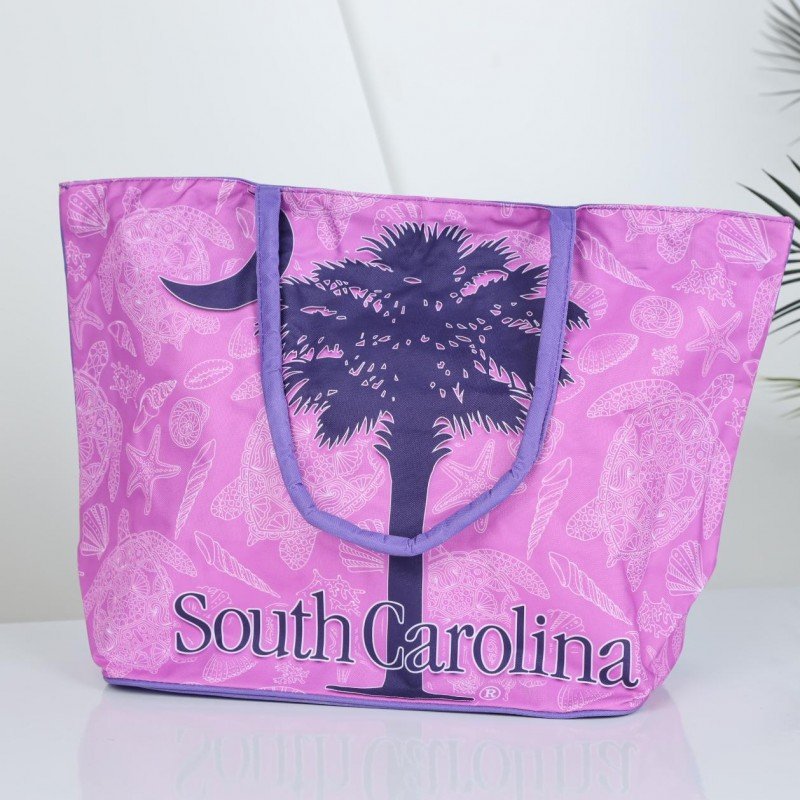 شنطة يد قماش للرحلات بتصميم نخلة لون زهري
