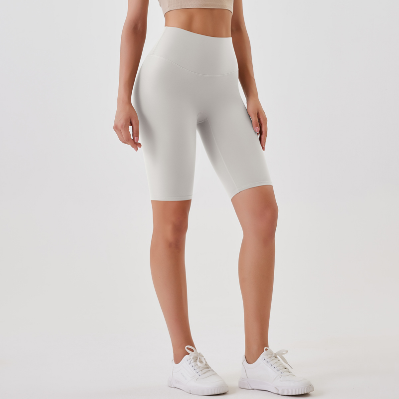 شورت ضيق مضغوط عالي الخصر للياقة البدنية للنساء لون أبيض- Tight-fitting Compression Shorts