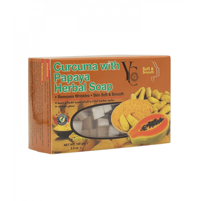 صابون عشبي بالكركم مع البابايا تبييض مضاعف لبشرة لطيفة وناعمة من واي سي 100ج :
