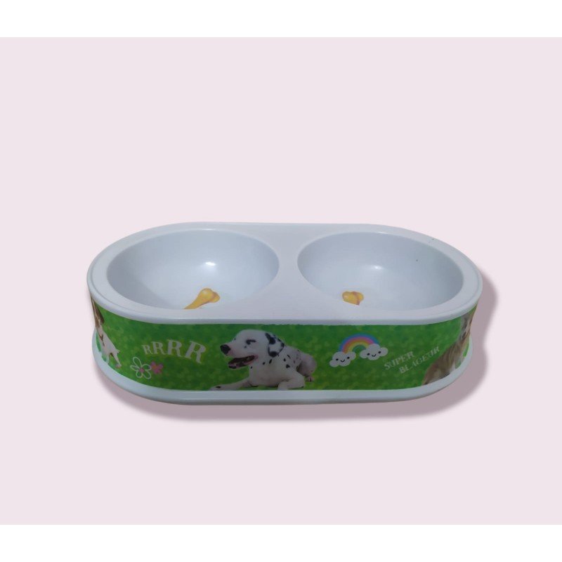 صحن بلاستيك مقسوم الى نصفين للحيونات لون اخضر