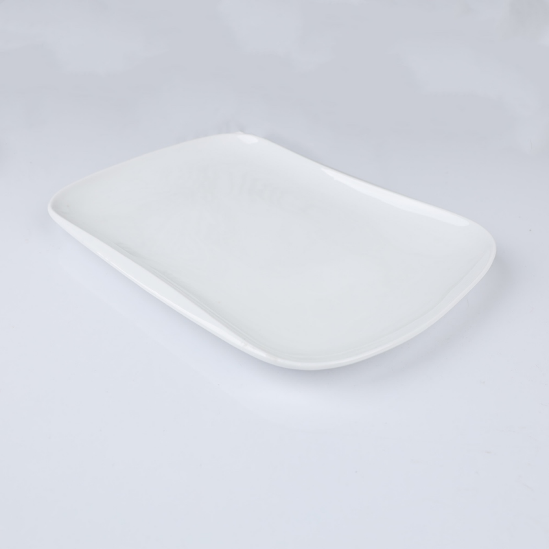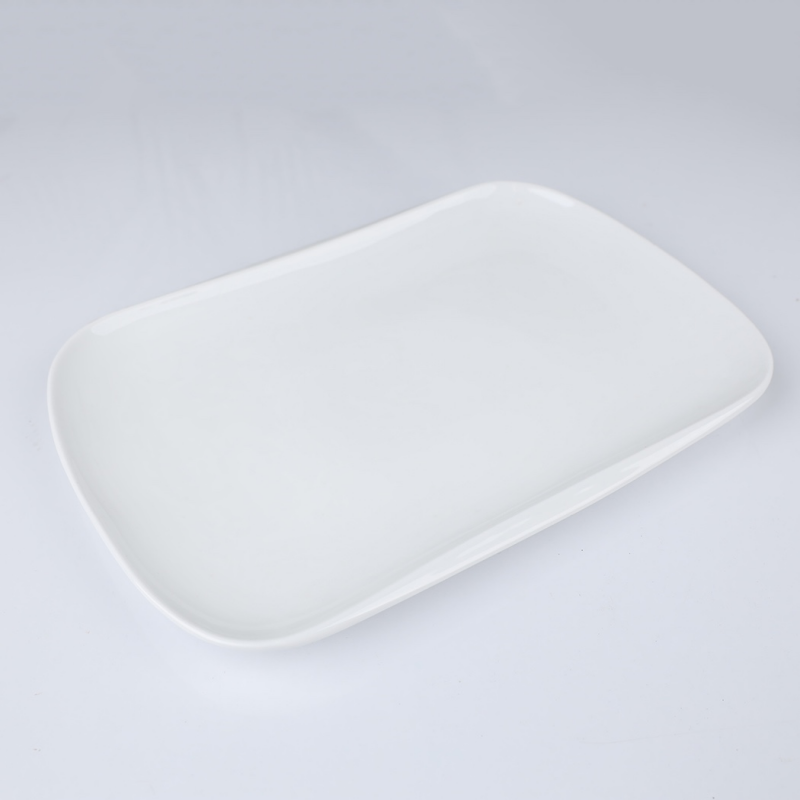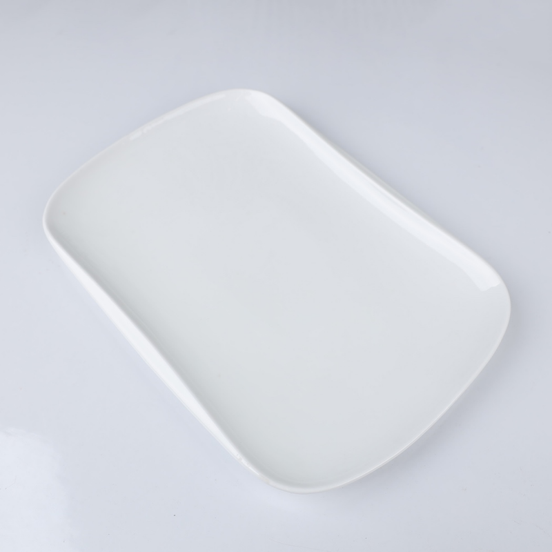 صحن بورسلان بتصميم شبه مستطيل حجم 30.5×21.5 سم لون أبيض