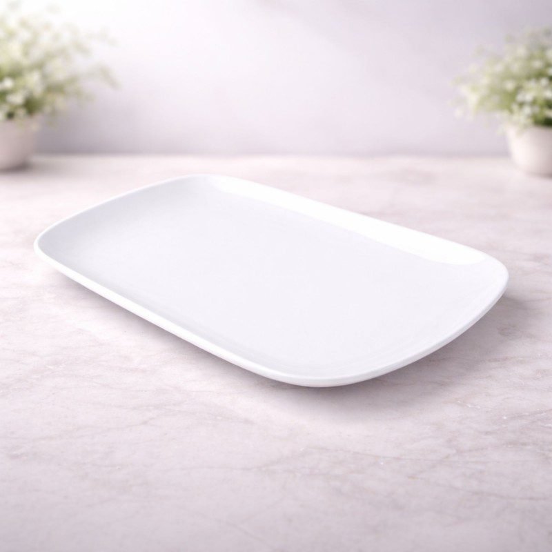 Be the first to review “صحن بورسلان بتصميم شبه مستطيل حجم 30.5×21.5 سم لون أبيض”