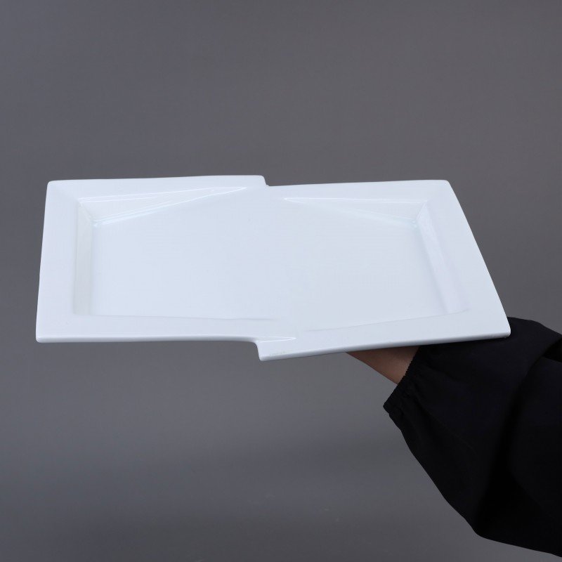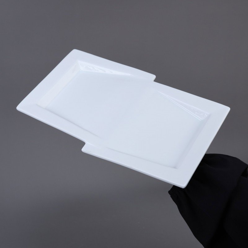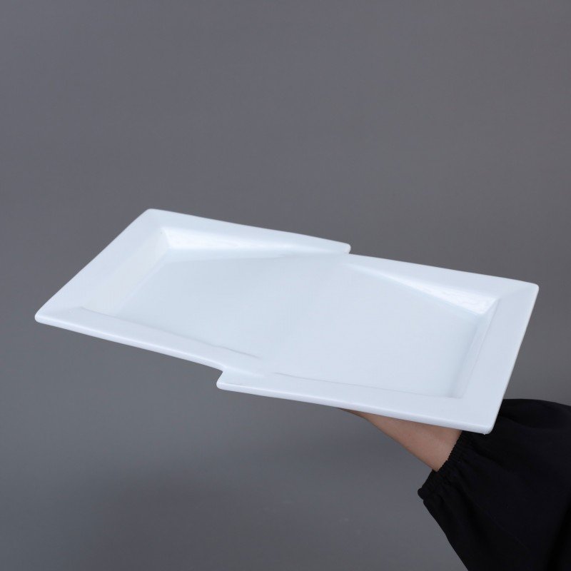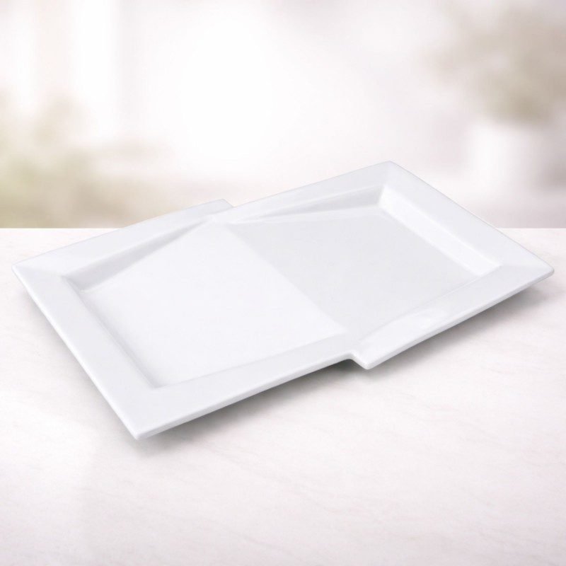 ✅ صحن تقديم طعام بورسلان بتصميم على شكل شبه مستطيل.