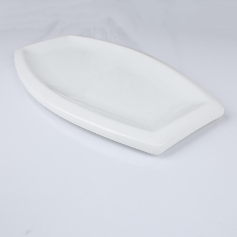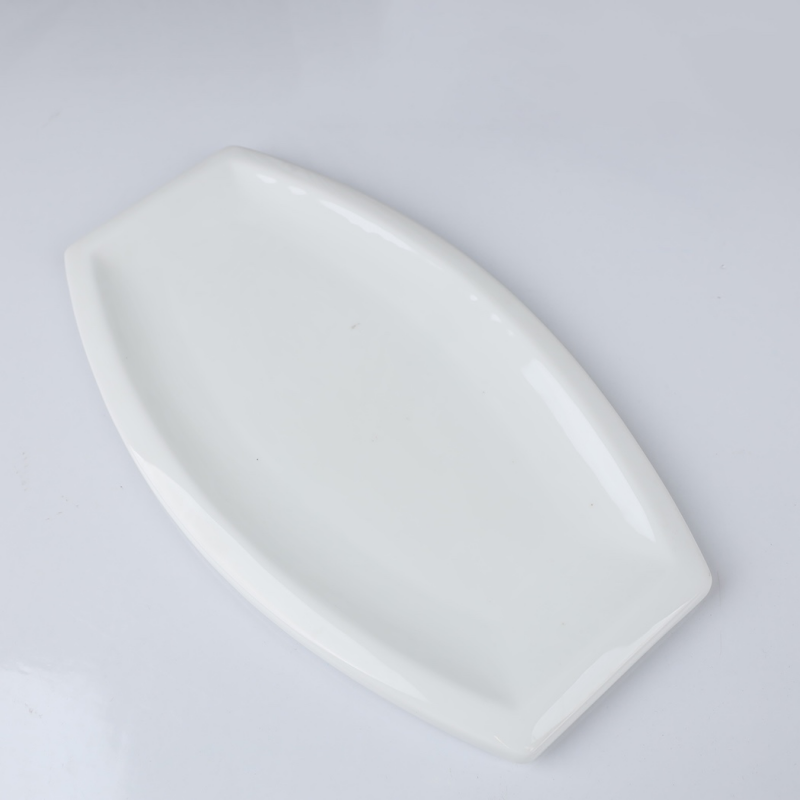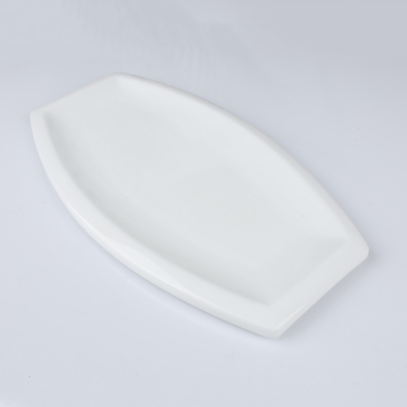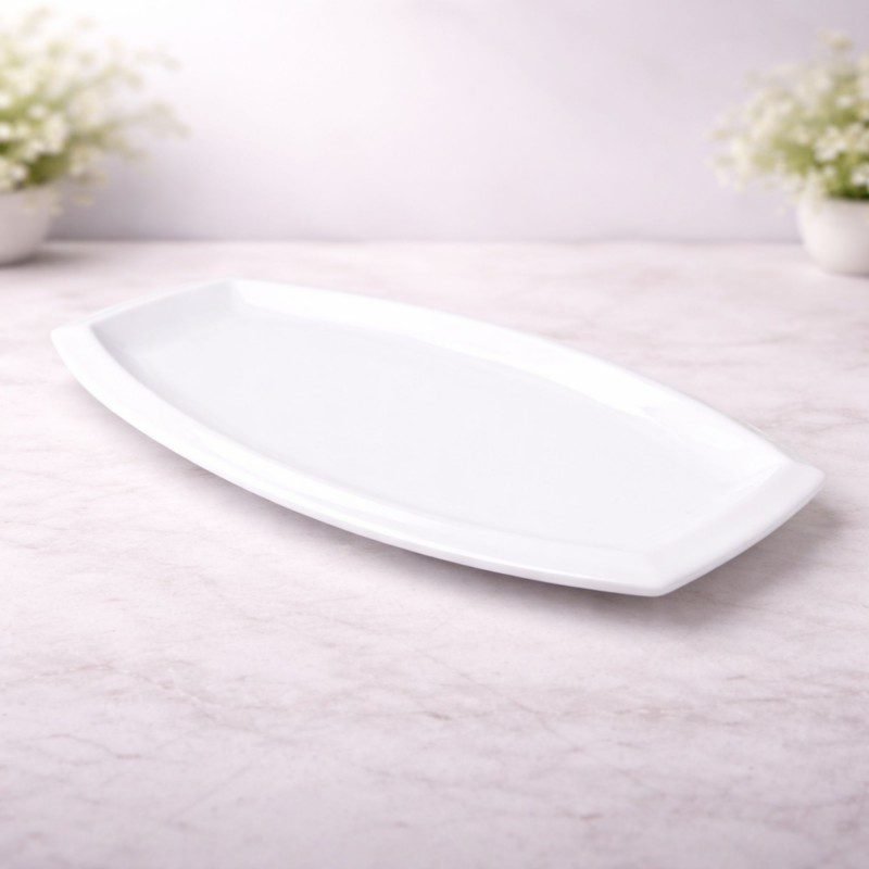 صحن بورسلان بتصميم شبه مستطيل حجم 34×19 سم لون أبيض