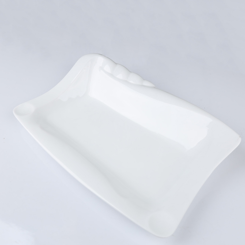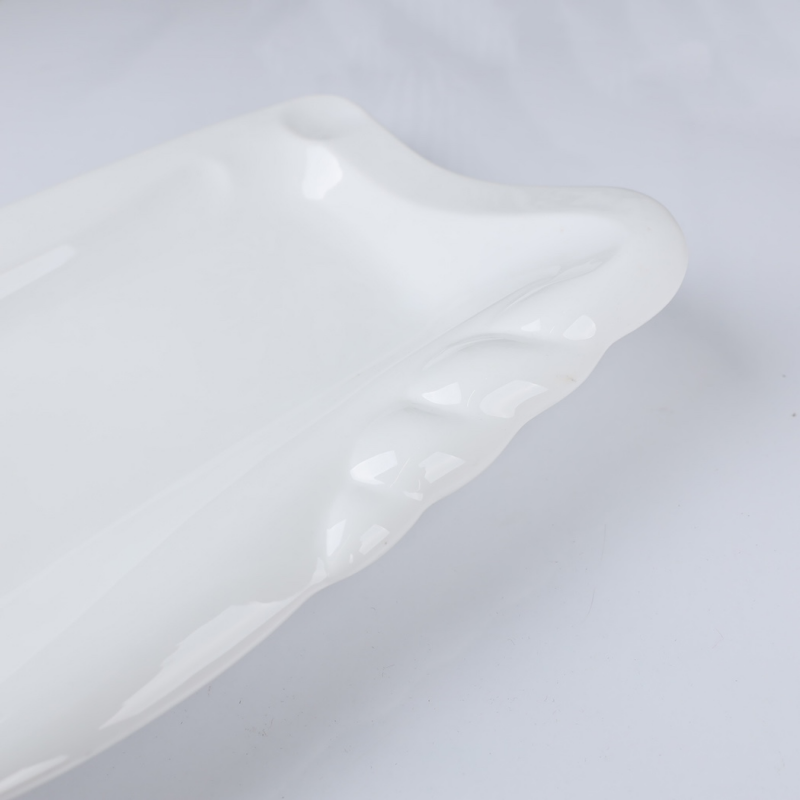 صحن بورسلان بتصميم شبه مستطيل حجم 37×27 سم لون أبيض