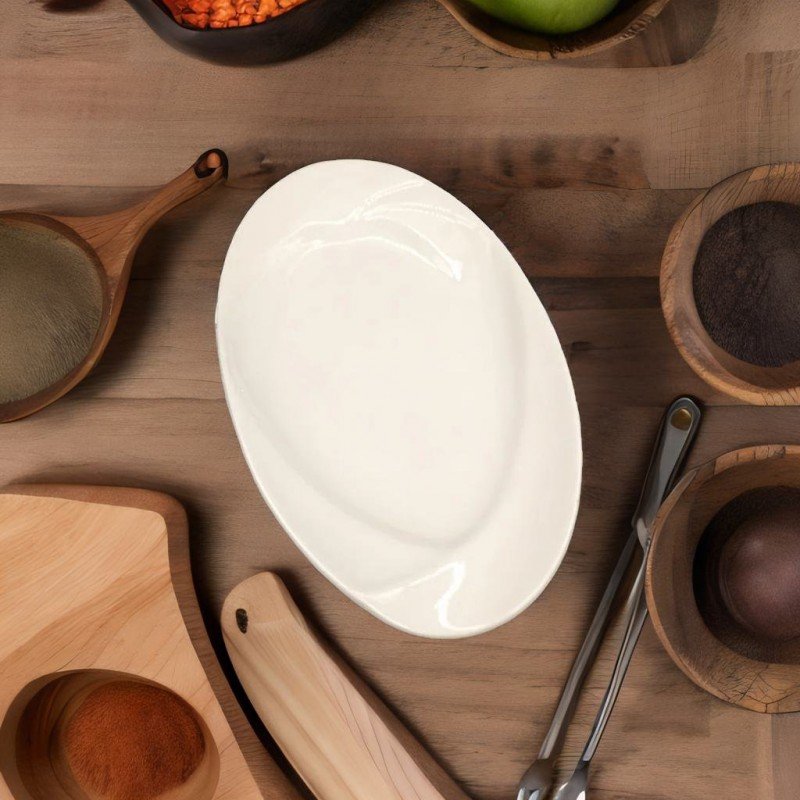 ✅صحن بورسلان بيضاوي. ✅اللون: أبيض. ✅الحجم:25.5*15**2. ✅مصنوع من مواد غذائية غير ضاره يستخدم لتقديم الطعام والضيافه ومتعددة الاستخدام.