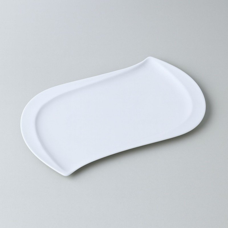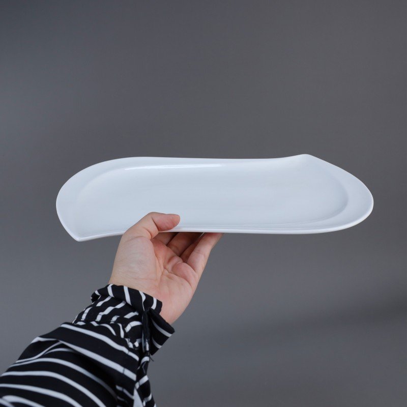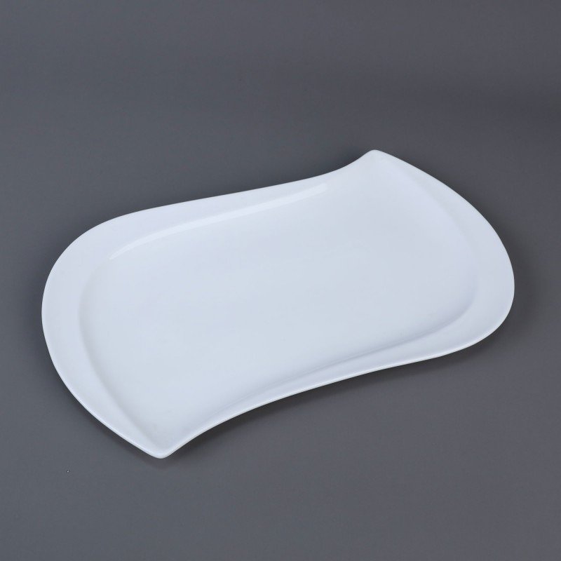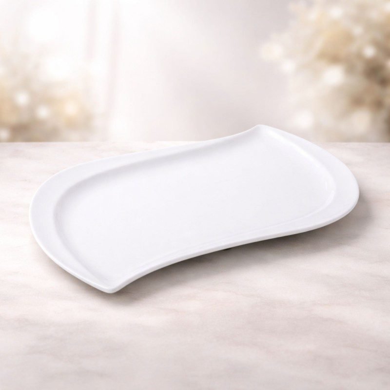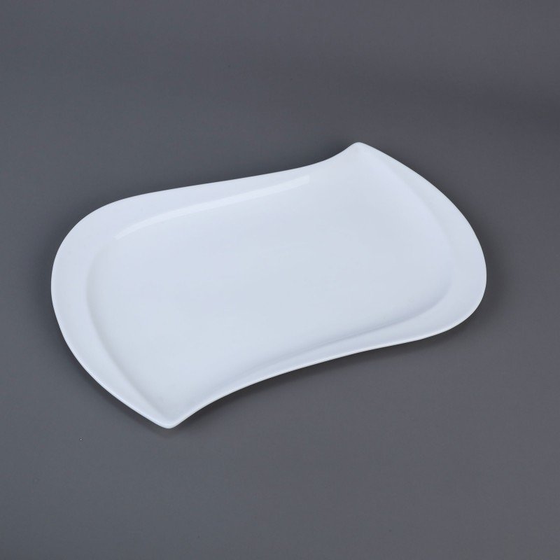 صحن بورسلان بتصميم شبه مستطيل حجم 33×21 سم لون أبيض