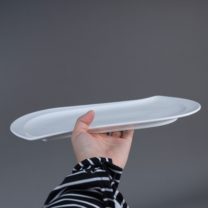 صحن بورسلان بتصميم شبه مستطيل حجم 32×19 سم لون أبيض